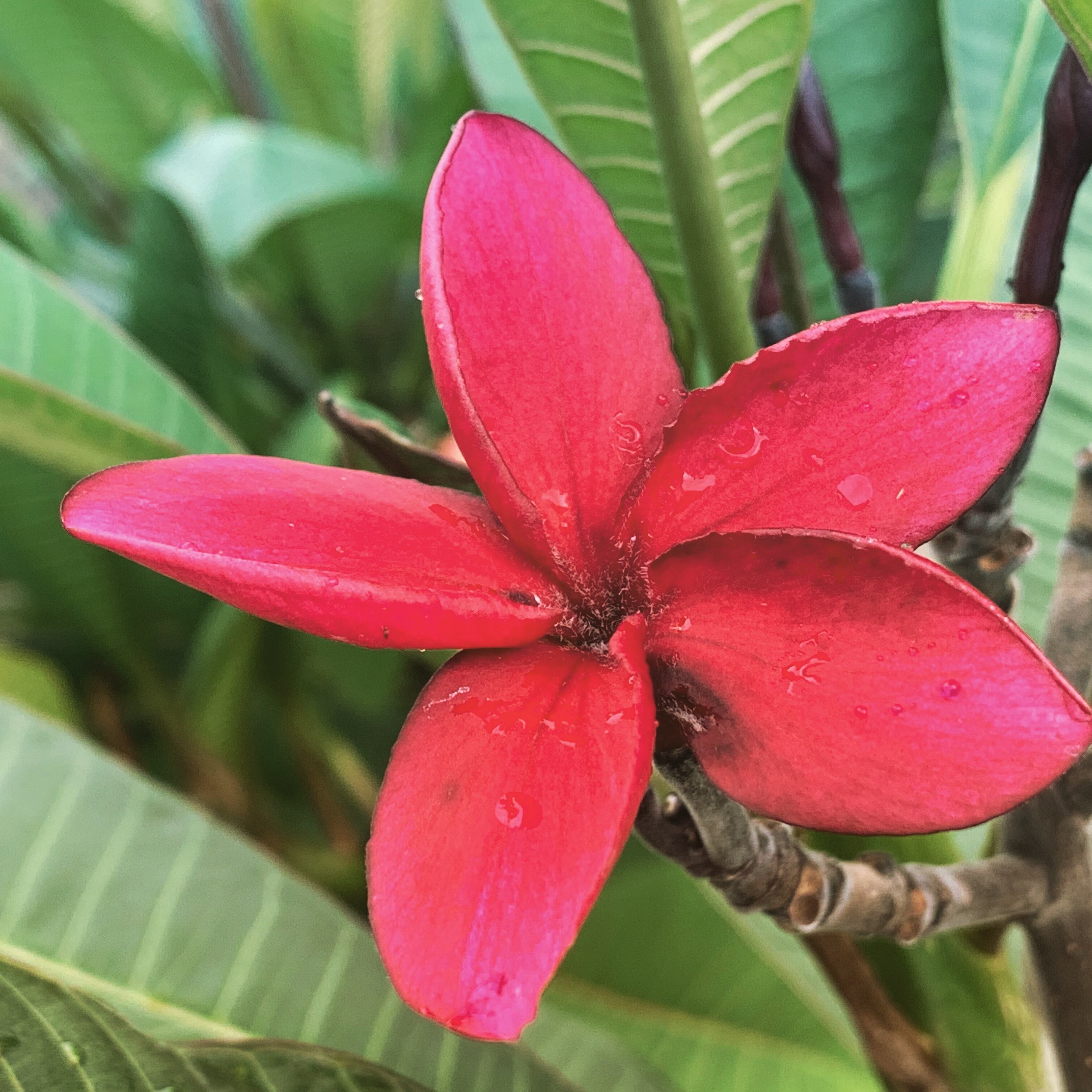 ハワイでレッドカラーのプルメリアといえばコレです。フラを踊る時に掛けるレイなどに使われる品種です。